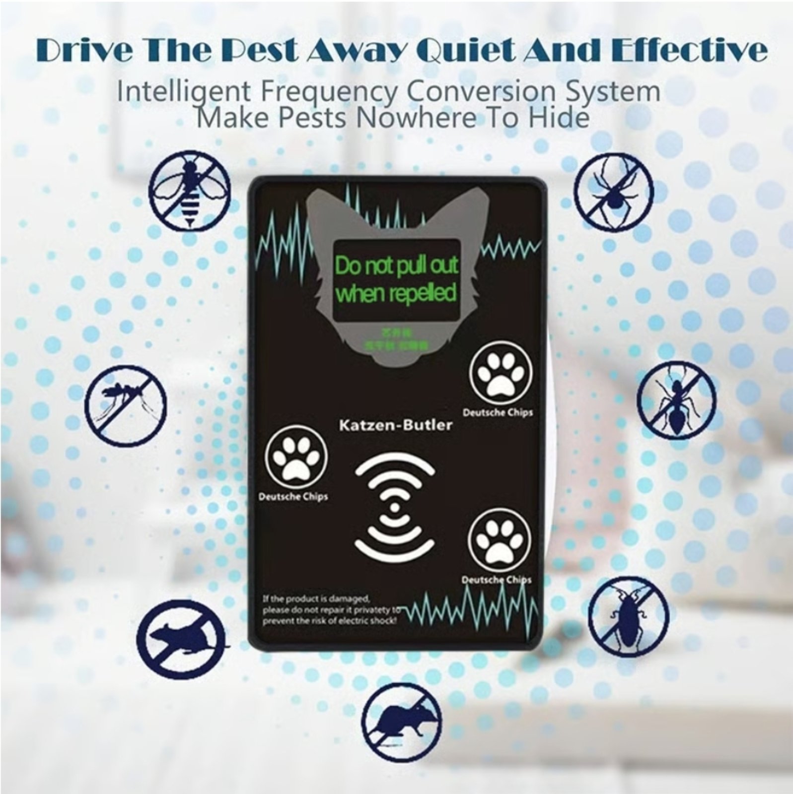 Fedezeti tartomány: 46–75 m²; Tápellátás: közvetlenül a konnektorból; Frekvencia: nagyfrekvenciás ultrahang; Elem, vegyszer és illat nélkül; Méretek: 9,2 × 5 × 5,6 cm; Dugó specifikáció: GB szabvány