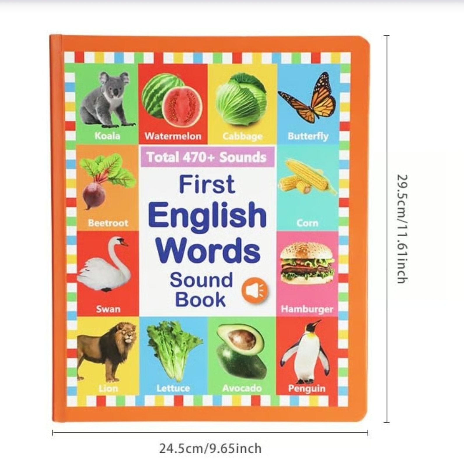 Knjiga vsebuje več kot 470 besed in 21 tem, vključno z živalmi, prevozom, telesom, šolo in vsakodnevnimi predmeti.